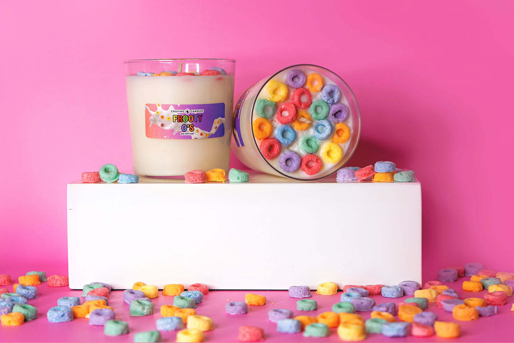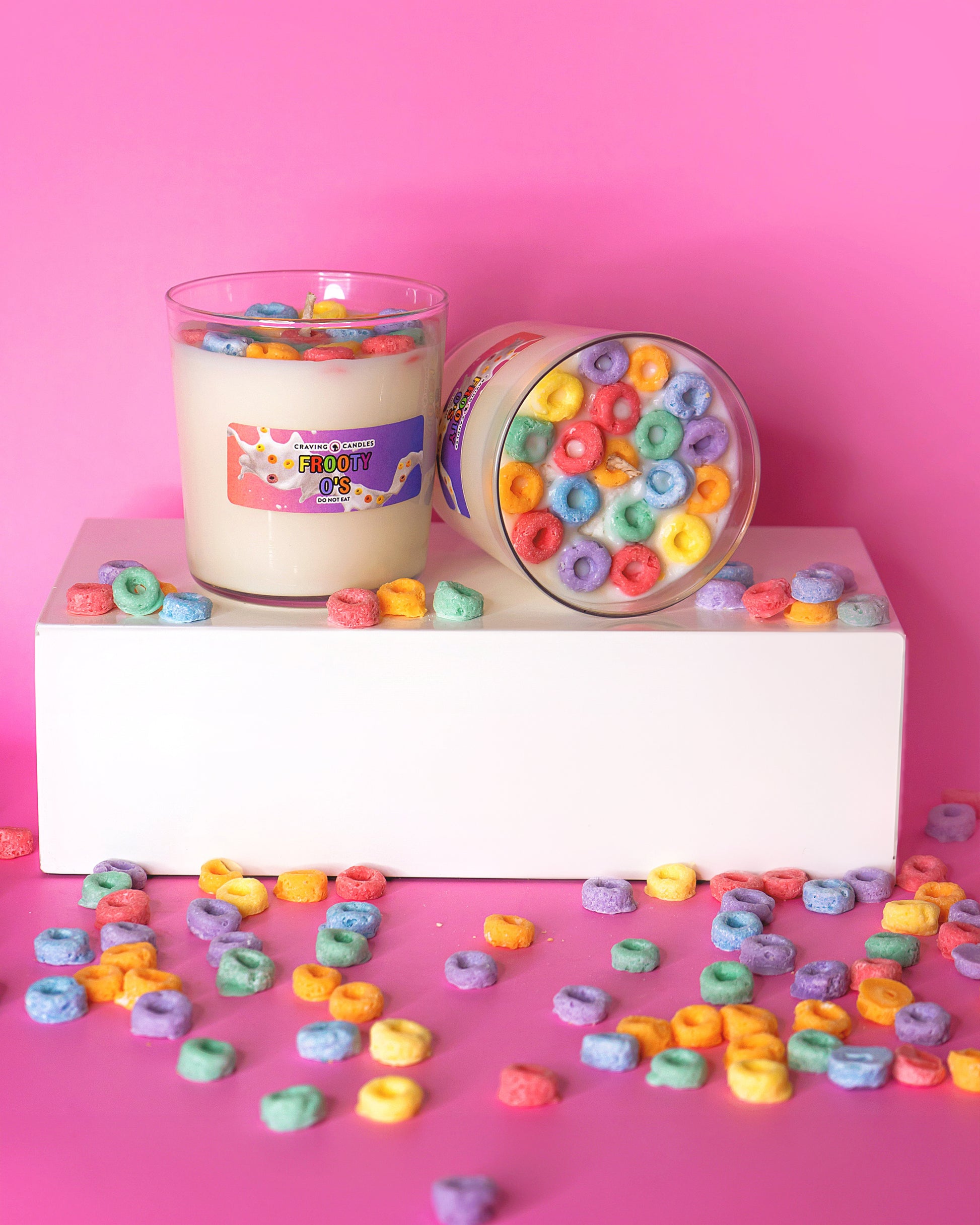 Each candle is topped with our signature handmade Fruit Loop cereal pieces and fills your space with the spot-on scent of classic Froot Loops — fruity, sugary, and wonderfully nostalgic.